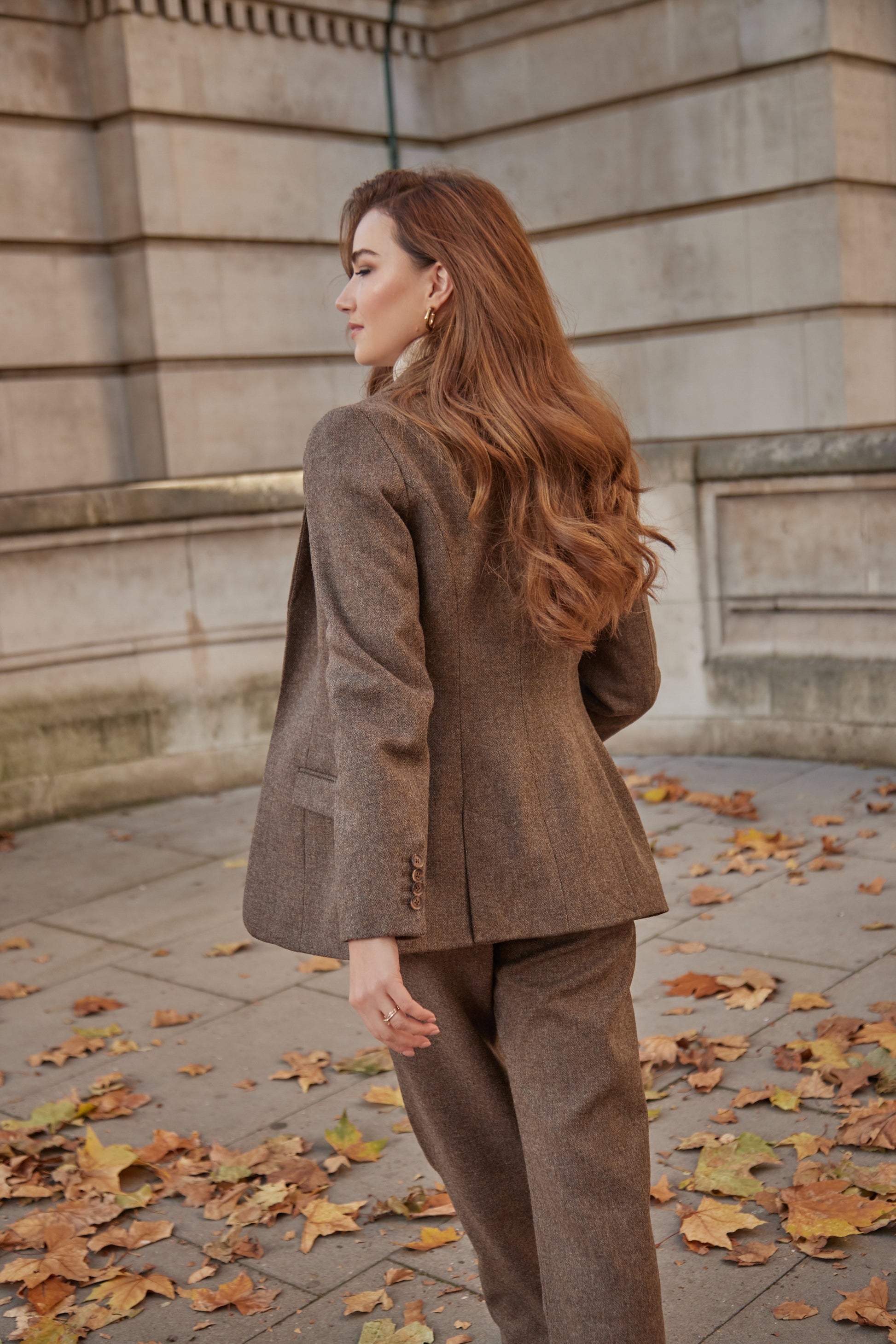 Aurelia Tweed Blazer - Mocha Herringbone