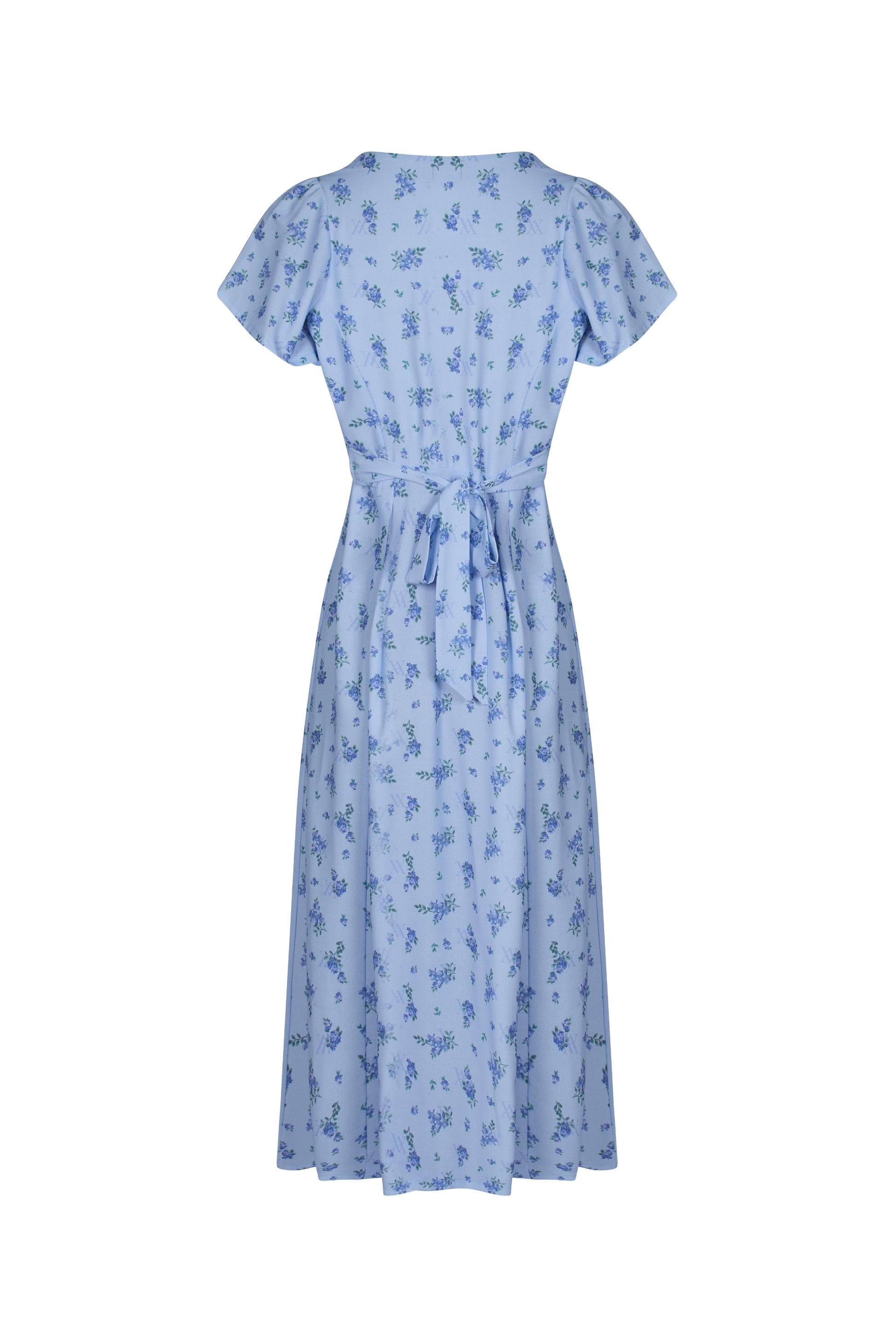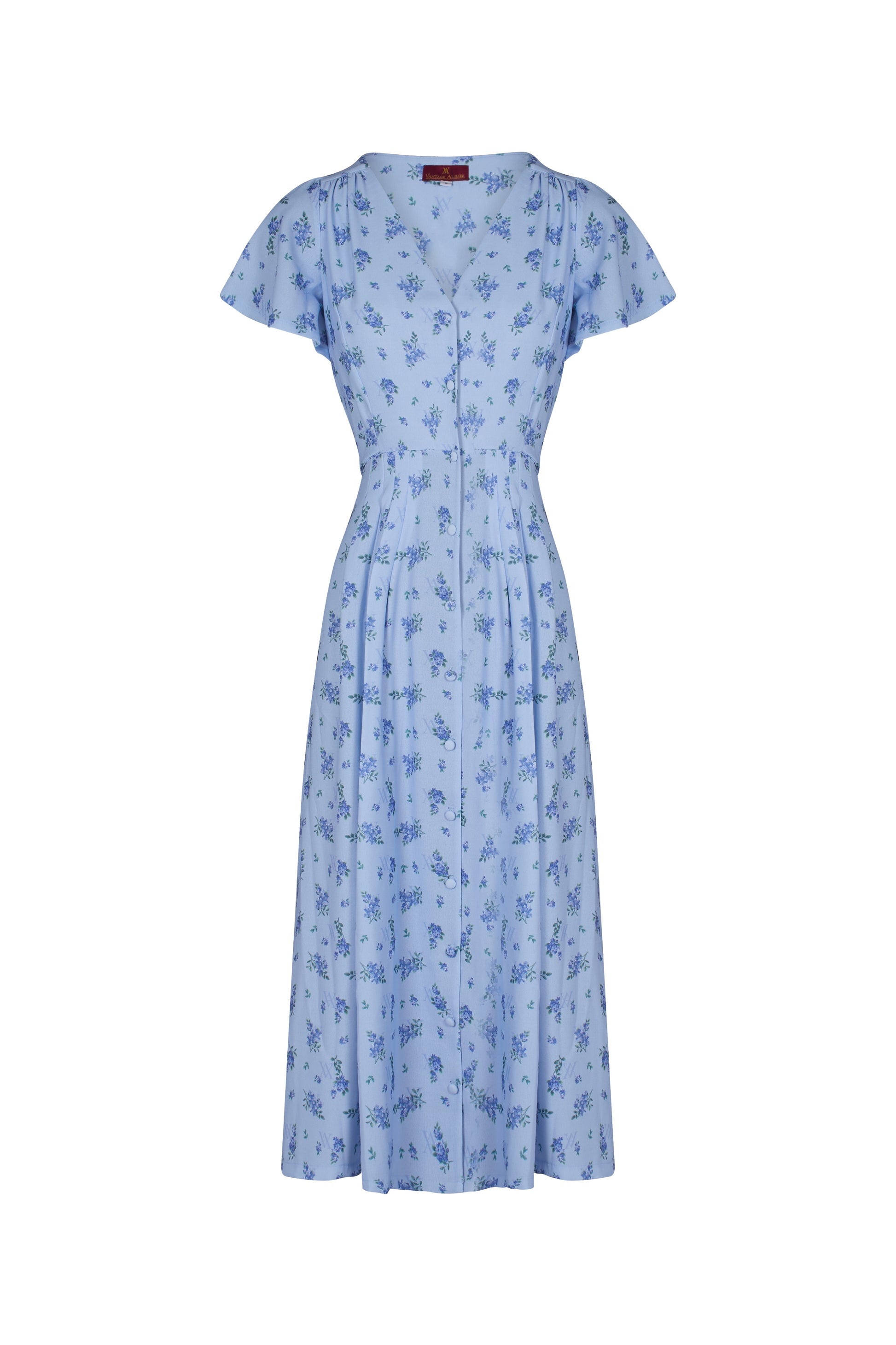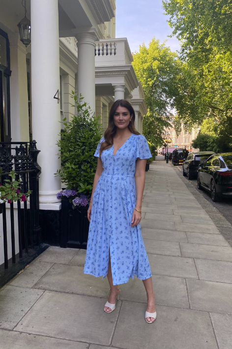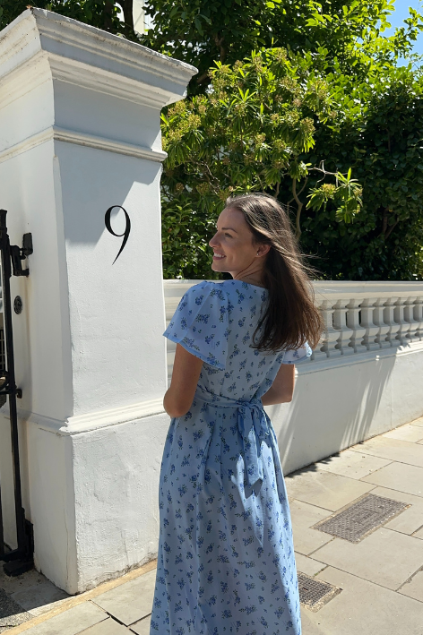 Floral summer dress curated with Vantage Atelier bespoke fabric, button-up front with back-tie.