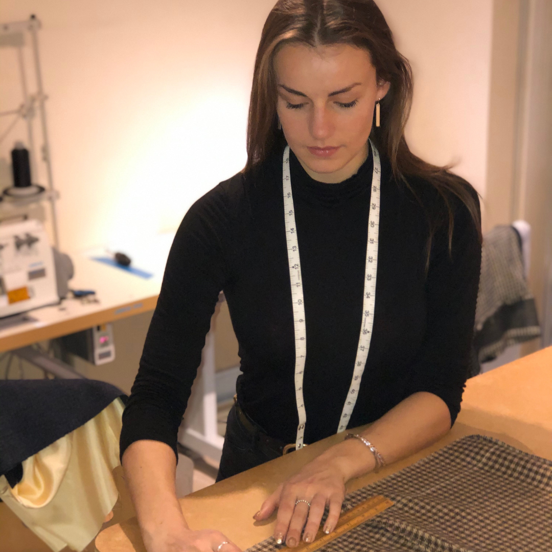 Initially, VA specialised solely in Tweed skirts, on a made-to-order basis. When a customer placed an order, Georgia hand-made their item in her North Yorkshire studio. With sustainability being a core value of the business, this was a great way to start so that no extra materials were wasted whilst a loyal customer base was developed.